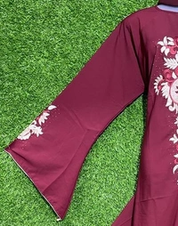 AM FASHION Maroon Fabric Abaya With Embroidery . It is an extravagant, sleek and gentle cloth that is truly 100% polyester, making it ideal for warm weather. It allows abayas of excellent quality which are comfortable to wear as well. There are variants in Firdouse but we always store Firdouse fabric abayas are the top quality of abaya fabric.