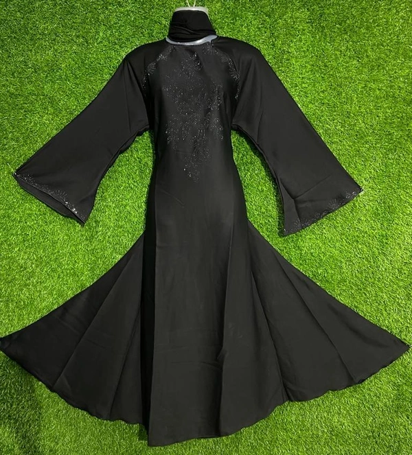 AM FASHION NIDA BLACK STONE FLOWER WORK ABAYA